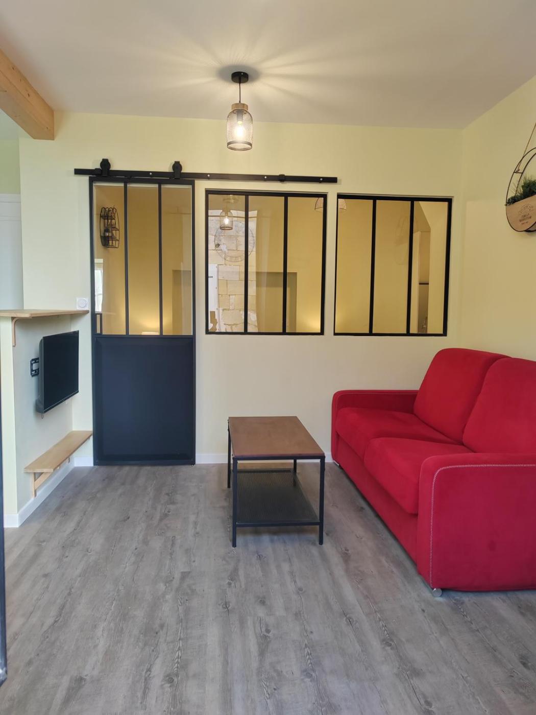 Appartement 1 Chambre. This apartment features 1 living room, 1 separate bedroom and 1 bathroom with a walk-in shower and free toiletries. The fully equipped kitchen has a stovetop, a refrigerator, a dishwasher and kitchenware. The apartment features a flat-screen TV with streaming services, a washing machine, a coffee machine, a seating area as well as a quiet street view. The unit has 2 beds.